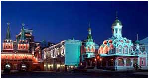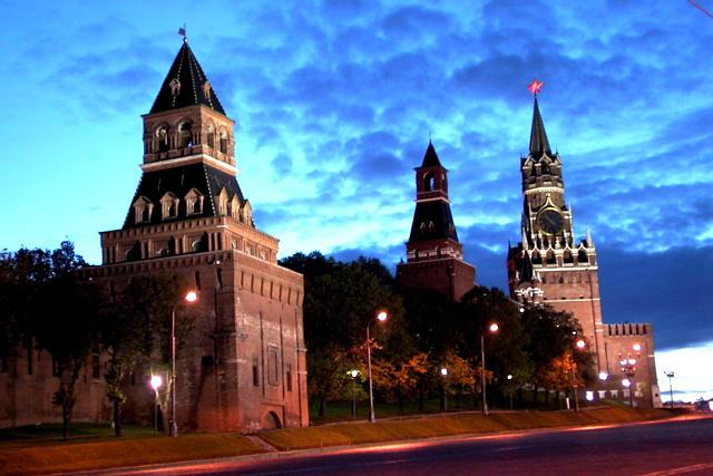 Ночной вид на храм Василия Блаженного и Спасскую башню Кремля
